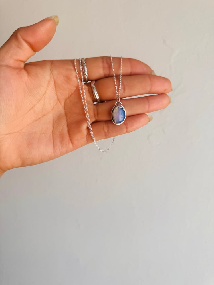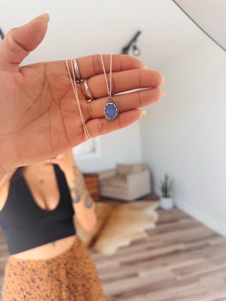 Love this style ! Starting to become a stable design in the Lucero house. Easy to pair with any outfit, minimal and light weight making this design your everyday necklace. Paired with a 20'' sterling silver chain.