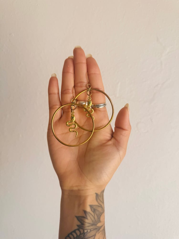 A forever serpent queen in the Lucero collection. Brass hoops, light weight earrings.