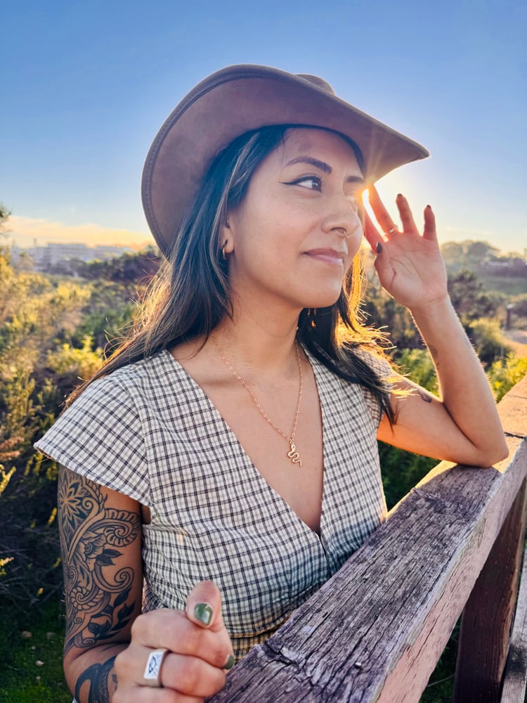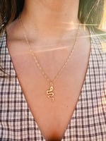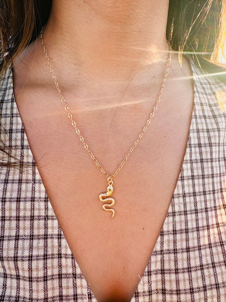 Easy to wear everyday serpent necklace. Comes with a 18'' gold plated chain.