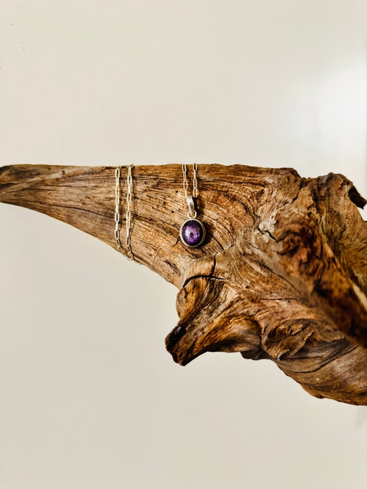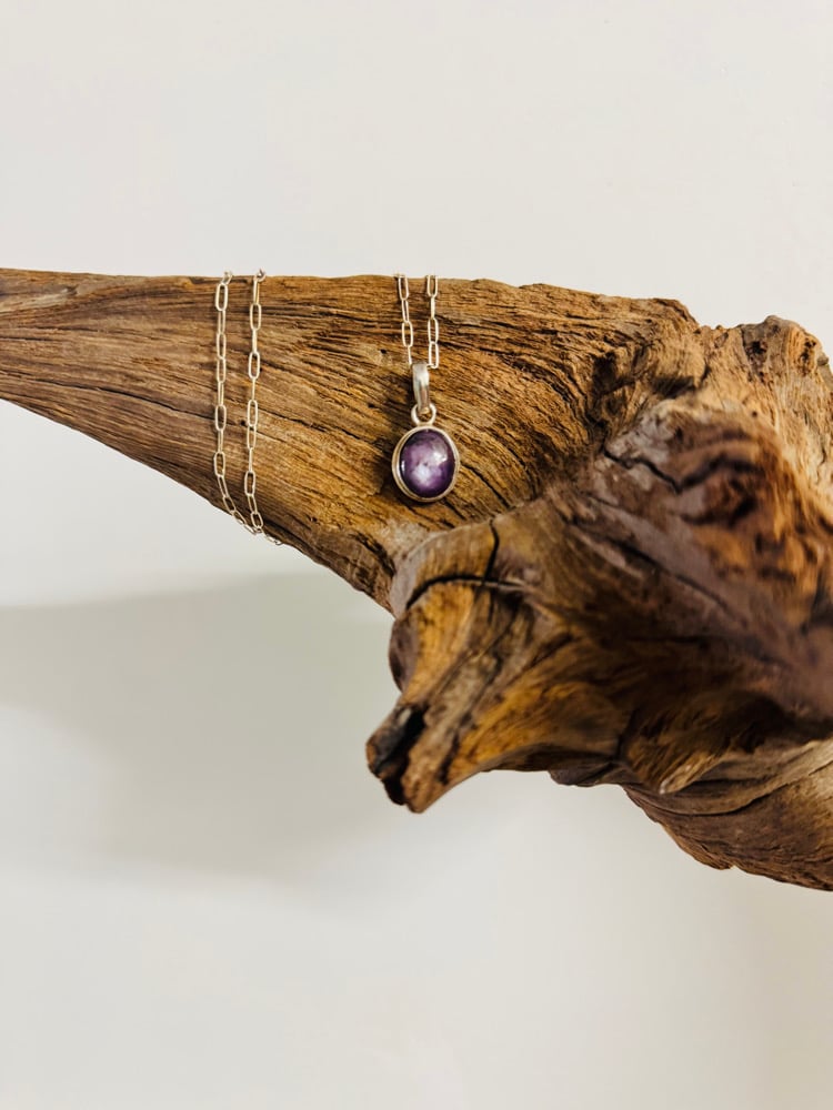 Sterling silver star ruby stone with a 16'' sterling chain.